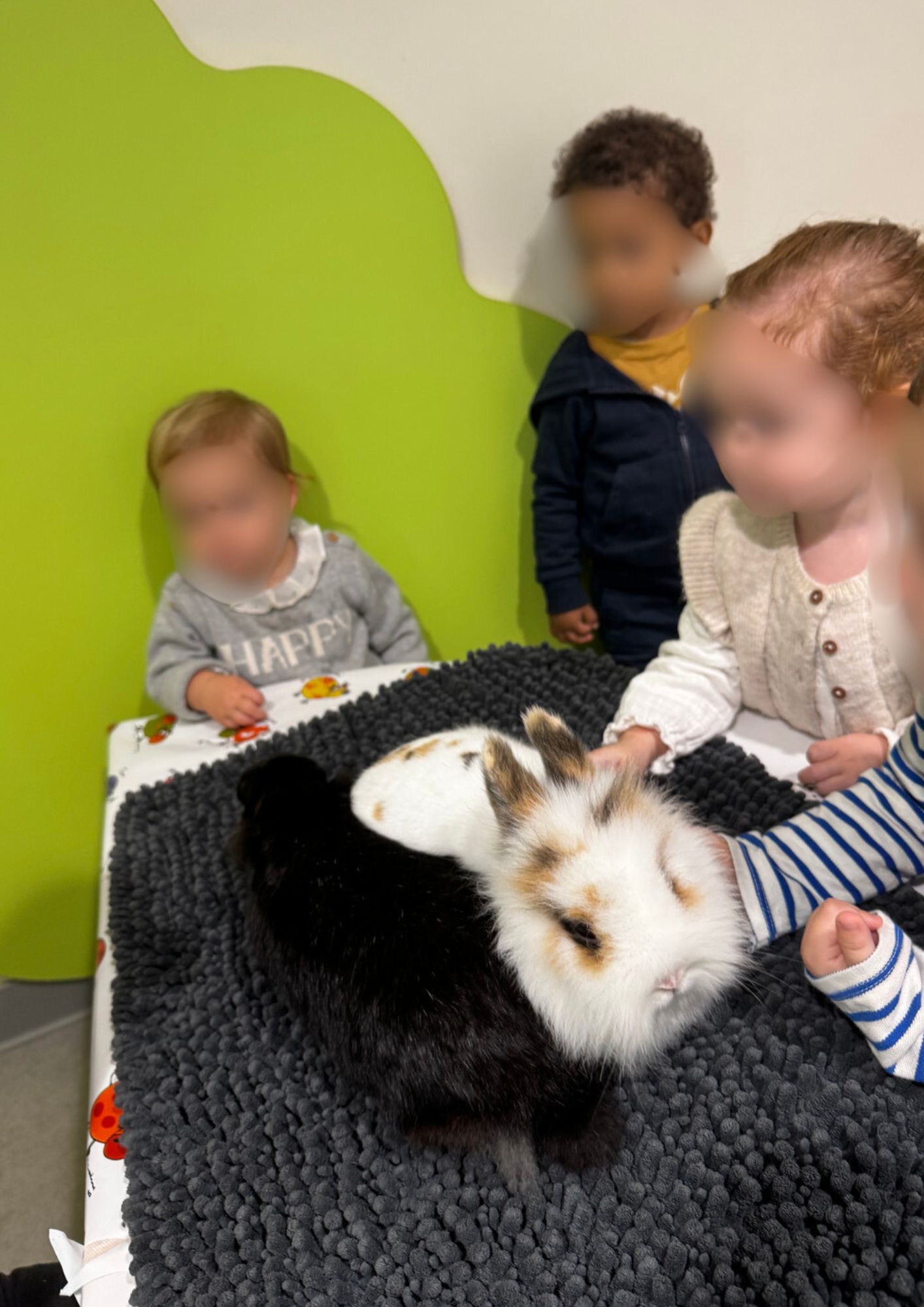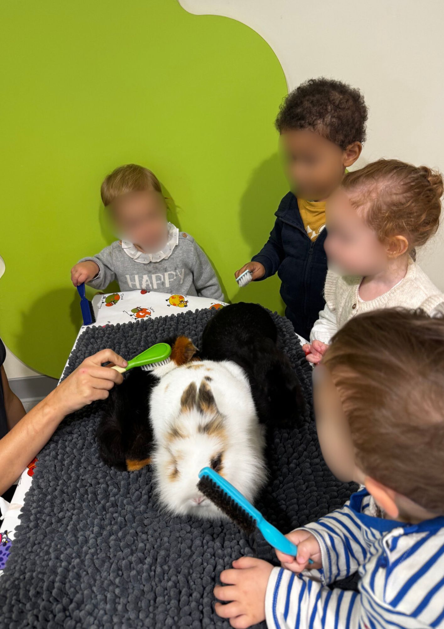 Même pas peur ! Avec douceur et curiosité, les enfants ont rencontré Marley, ainsi que ses copines lapines et le petit cochon d’Inde venu leur rendre visite. Entre caresses, brossages et petits jeux, chacun a vécu un instant incroyable, rempli de tendresse et de découvertes.