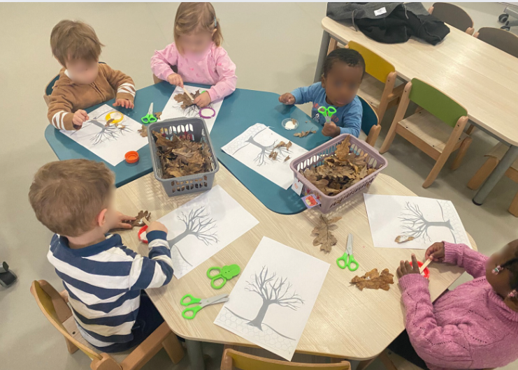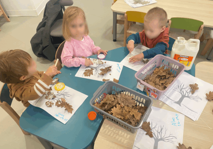les enfants ont laissé parler leur créativité avec une activité de collage pas comme les autres : de vraies feuilles ramassées dans la nature ! Entre couleurs d’automne, formes variées et textures à explorer, chacun a composé sa propre œuvre naturelle.