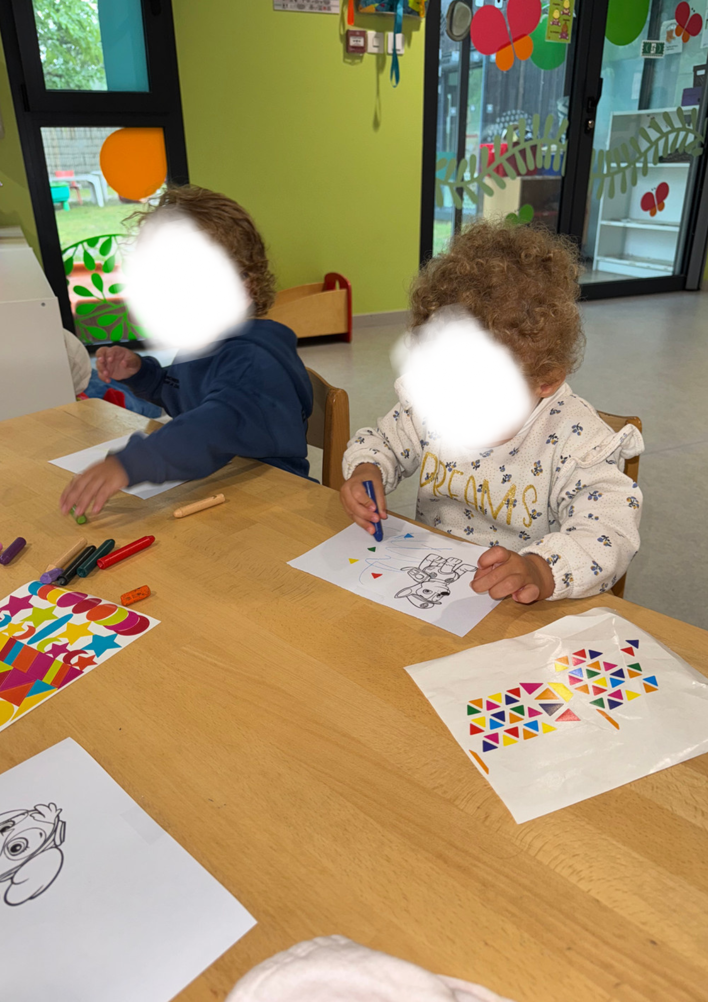 Les enfants ont pris le temps de s’installer pour une activité coloriage. Armés de crayons de toutes les couleurs, ils ont donné vie à leurs dessins avec beaucoup de concentration et d’imagination.